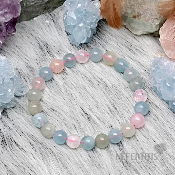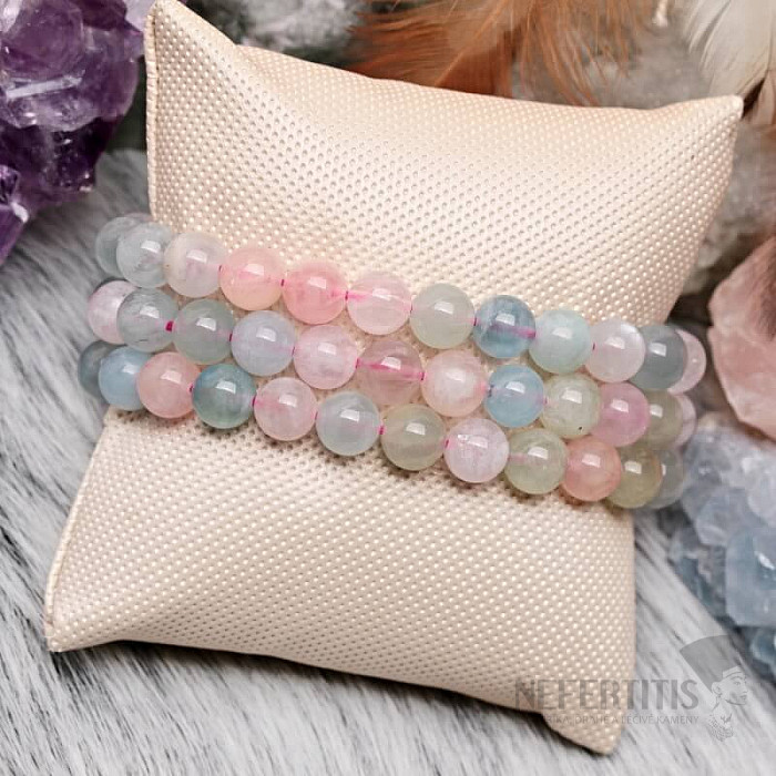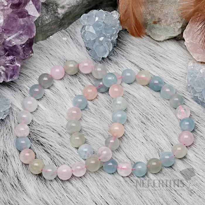 A delicate bracelet made of beads of natural rare morganite , also called pink emerald, brings love, belonging and mutual understanding between partners. It is a stone of divine love. Morganite is a personal stone of people born under the sign of Libra. Morganite beads of approximately 8 mm are strung on a high-quality nylon elastic band of the color.