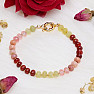 Attractive bracelet with a mix of semi-precious stones - red jasper, yellow jadeite, carnelian and others, decorated with metal beads. Treat yourself to a unique piece of jewelry - a bracelet made of a mix of semi-precious stones combines the beauty of nature with elegance and positive energy. The size of the beads is approximately 5.7 to 6.5 mm, the metal beads and the jewelry clasp are made of base metal. Illustrative image, you are buying a natural product, therefore individual bracelets may differ from it, especially in the color shade and pattern of the stone. However, you will always receive a bracelet of comparable quality.