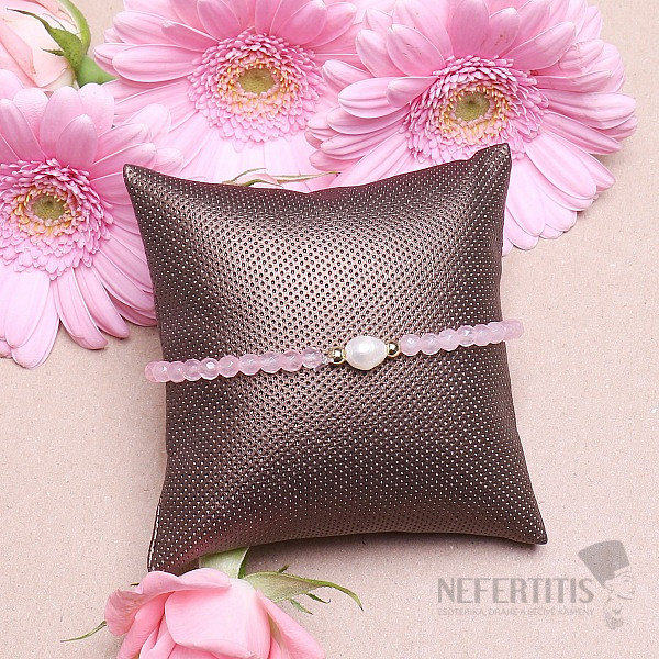 Beautiful and energetically very strong bracelet made of cut beads of natural gentle rosary with a pearl. Rosary is a symbol of love, beauty and healing. Rosary beads approx. 3 mm, metal beads made of base metal, are strung on a high-quality nylon rubber band of neutral color. Illustrative depiction, you are buying natural material, individual bracelets may differ slightly from the accompanying photographs in color shade and stone drawing.