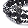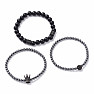Attractive set of three bracelets of fashion Queen bracelets. The bracelets are made of black agate and synthetic hematite, decorated with cubic zirconia. Beads of approx. 4 and 8 mm are strung on a quality elastic nylon rubber band. Illustrative image, you are buying a natural material, individual bracelets may differ slightly from the accompanying photos in terms of color shade and stone pattern.