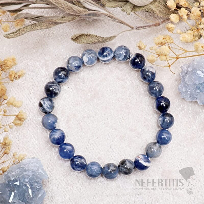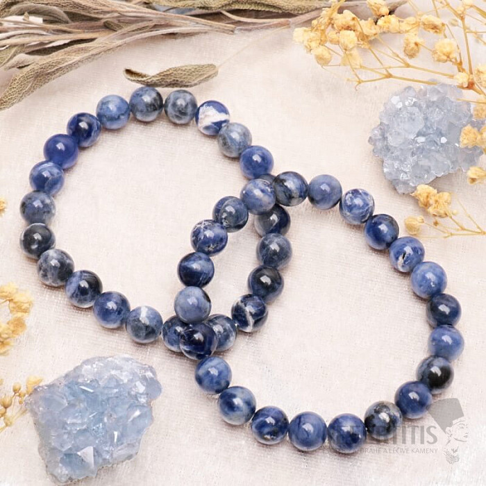 A stylish bracelet made of natural sodalite in rich blue tones with a delicate white pattern is a striking yet harmonious accessory. The 8 mm beads give the bracelet a fuller and more confident look, making it stand out on the wrist. It is suitable for both women and men.