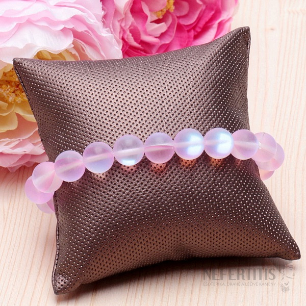 Gently pink Tender love bracelet made of satin beads with opal color and a rainbow play of light evoking tender love. Tanning has soothing effects and helps with insomnia. Opal beads with a size of about 1 cm are strung on a quality nylon rubber band. Illustrative illustration.