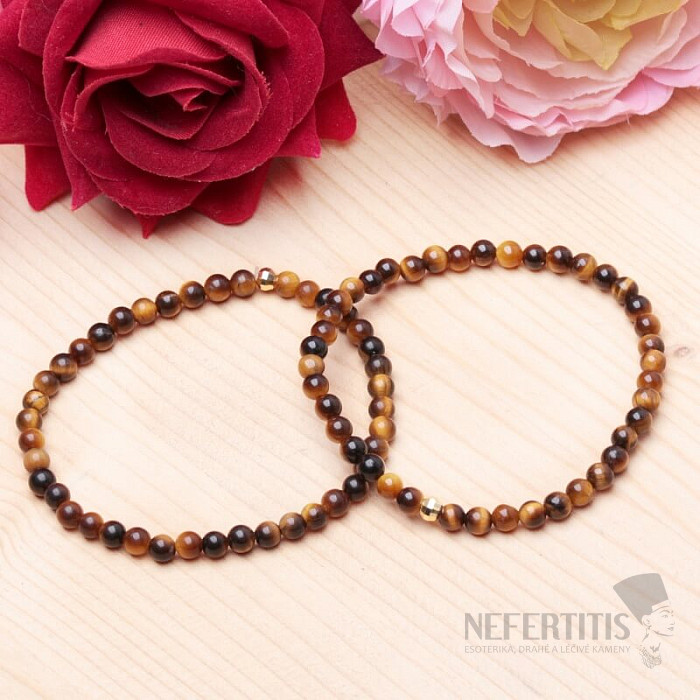 Attractive bracelet made of shiny tiger eye beads with a gold-plated Ag 925 silver bead. An elegant bracelet, suitable for various occasions. Size of beads approx. 4.6 mm, silver Ag 925, strung on a quality nylon elastic band. Illustrative representation of natural material, where the color and structure of the stone may differ from the accompanying photos. However, you will always receive a bracelet of comparable quality.