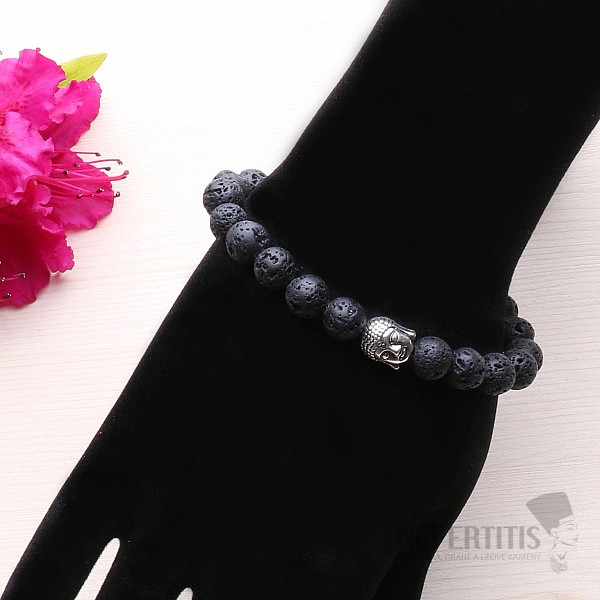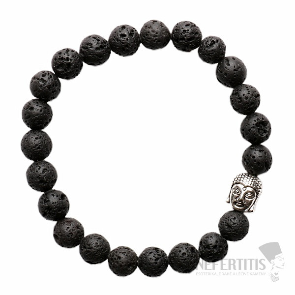 An attractive Buddhist bracelet made of natural lava stone beads and a metal Buddha head gives strength to the body and soul, increases self-confidence, reduces anxiety and stress. Lava stone is an element of Earth, therefore it gives its owner positive energy, optimism and life balance. Lava stones help to relax a tired mind and induce a wonderful feeling of perfect harmony and unity. The bracelet incorporates a Buddha head made of base metal in the color of tarnished silver, so that the bracelet brings abundance, happiness and a full life to its wearer, which the Buddha is a symbol of. The beads are strung on a neutral colored nylon elastic band. The diameter of the beads is approx. 7.5 mm. This bracelet is suitable for both women and men. Illustrative image.