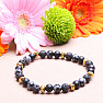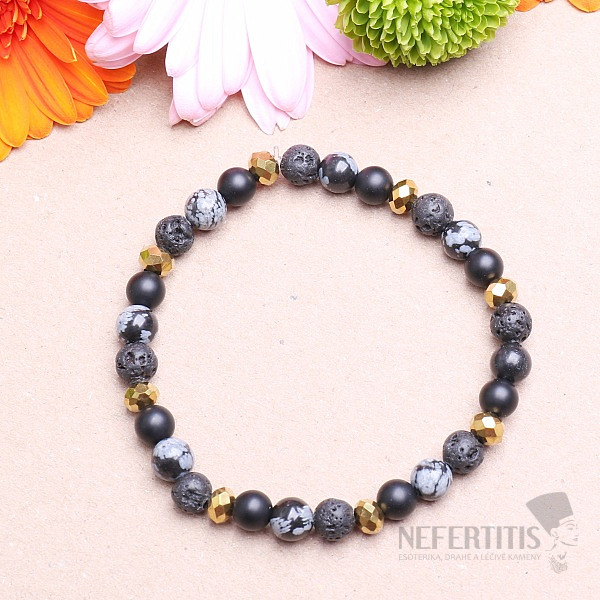 Elegant lava stone, agate and flake obsidian bead bracelet with electroplated cut glass beads that add sparkle and highlight to the bracelet. The beads are strung on a neutral-colored nylon elastic band. The diameter of the beads is approx. 6 - 8 mm, strung on a high-quality neutral-colored nylon elastic band. Illustrative image.