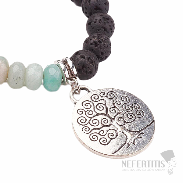 Lava Stone Bracelet with Amazonite and Tree of Life