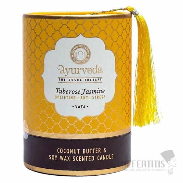 In this gorgeous candle, the notes of fresh Indian jasmine flowers combine beautifully with white tuberose flowers to create this uplifting and stress-relieving scent. This fragrance goes well with vata dosha . You will literally be enchanted by the pleasant aroma, creating a captivating atmosphere for calming the mind and body, for meditation, contemplation, general relaxation and detachment from the worries of everyday life. It has an anti-stress effect.