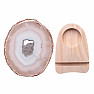 Tealight candle holder made of a slice of natural agate. Supplied with a wooden base with a milled hole for the candle, located behind the slice. Each slice is original, therefore the color, shape and size may differ from the sample shown. Country of origin: Brazil