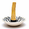 Attractive ceramic bowl for smoking fragrant woods, especially palo santo. Material: ceramic, height approx. 3.5 cm, diameter approx. 12.5 cm, hole for wood approx. 2.5 cm. Illustrative illustration.