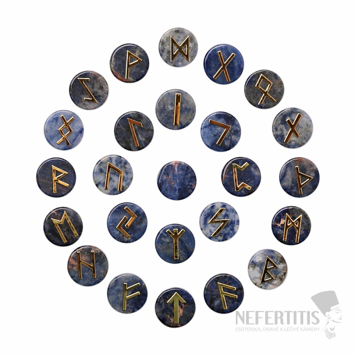 A beautiful complete sodalite rune stone set includes 24 rune letter rune stones and one clear stone. Each of the 24 runes has its own meaning and equivalent in the Latin alphabet, the characters are stuck on the stones. The size of the rune stones approx. 0.77 x 1.7 cm. The size of the stones is ideal for carrying around in a purse or pocket. How to proceed with divination using rune stones can be found in the article here .
