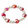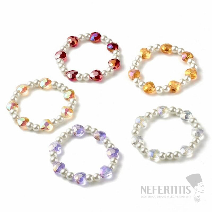 Attractive children's bracelet made of white beads with glass hearts with aqua aura effect, mix of colors. The bracelet is a fashionable accessory for various occasions, such as a children's party, the theater, but also just like that - for fun or as a gift for a friend. Material: glass and acrylic. Illustrative image.