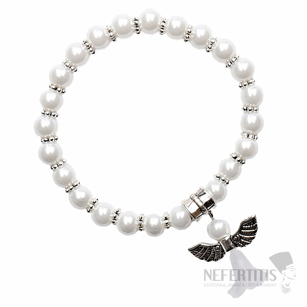 Magical children's bracelet made of white glass beads with a cute white acrylic angel. The size of the pearls is approx. 6 mm, the circumference of the bracelet is approx. 14 cm in the unstretched state.
