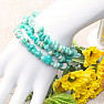 A bracelet made of chopped, tumbled pieces of amazonite, strung on an elastic band.