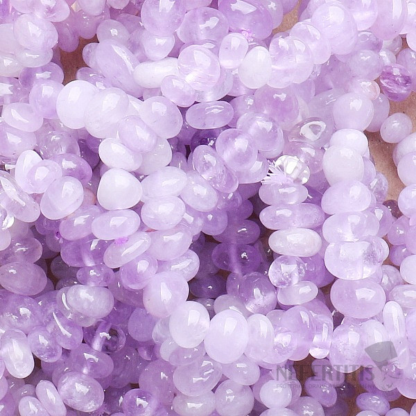 Lovely, charming at first glance, yet very attractive bracelet made of polished pieces of lavender amethyst . Stones with a bead are strung on an elastic nylon sleeve of purple color. Illustrative representation of natural material, where the color and structure of the stone may differ from the accompanying photos. However, you will always receive a bracelet of comparable quality.