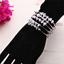A charming wide fashionable wrap bracelet made of five rings of steel and pieces of crystal and rose gold, in which the silvery beauty of shiny metal and sparkling crystal with the soft pink color of rose gold , which is a stone of love, beauty and healing, harmonize together in perfect harmony. The great thing about this bracelet is that the crystal, as the only stone, strengthens the effects of other stones, thereby increasing the hope, love and healing that the rosary brings to its wearer. The colors of both stones create a piece of jewelry that inspires life optimism and joy just by looking at it. The crystal gives this bracelet a luxurious look. Show your fashion sense with this so elegant and attractive bracelet. A combination of pieces of crystal and rose gold , inserted together with small steel beads between silvery metal - the bracelet can be adjusted to the size of any hand! Illustrative image, buy natural material, individual bracelets may differ from accompanying photos in size, color shade and shape of stones.