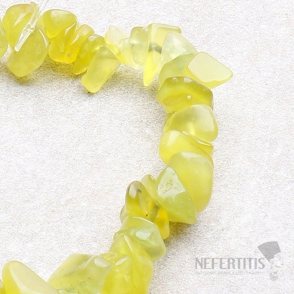 A distinctive bracelet made of chopped tumbled pieces of beautiful green jadeite. Threaded on a quality nylon rubber band of neutral color. Illustrative depiction of natural material, where the color and structure of the stone may differ from the accompanying photographs. However, you will always receive a bracelet of comparable quality.