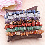A cost-effective set of seven bracelets made of chopped polished pieces of gemstones in chakra colors: red agate, orange carnelian, golden-brown tiger's eye, green aventurine, blue sodalite, amethyst, white crystal. Treat yourself to a combination of bracelets from your favorite stones. Threaded on a quality nylon rubber band of neutral color. Illustrative depiction of natural material, color, shape and size of stones may differ from the accompanying photographs.