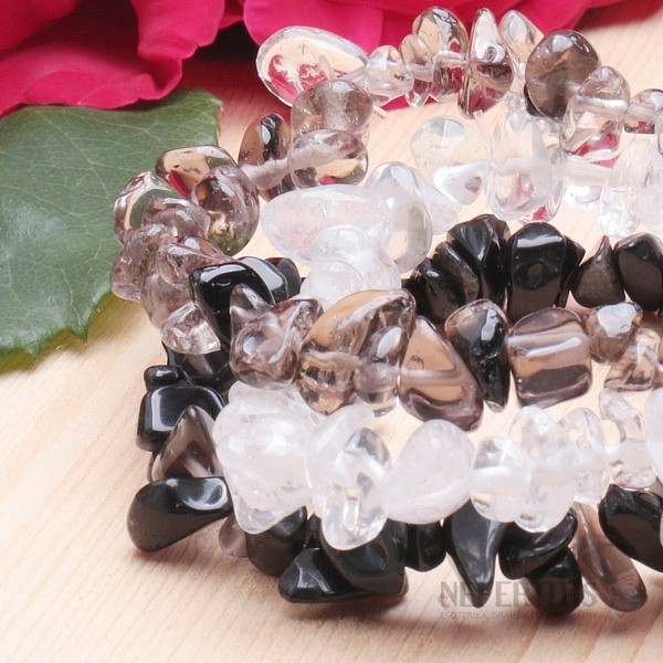 A value-for-money set (compared to buying bracelets individually) of three bracelets made from cut polished pieces of gemstones - crystal, agate and black agate. Treat yourself to a combination of bracelets made of your favorite stones. Stringed on a high-quality, neutral-colored nylon elastic band. Illustrative depiction of the natural material, color, shape and size of the stones may differ from the accompanying photos.