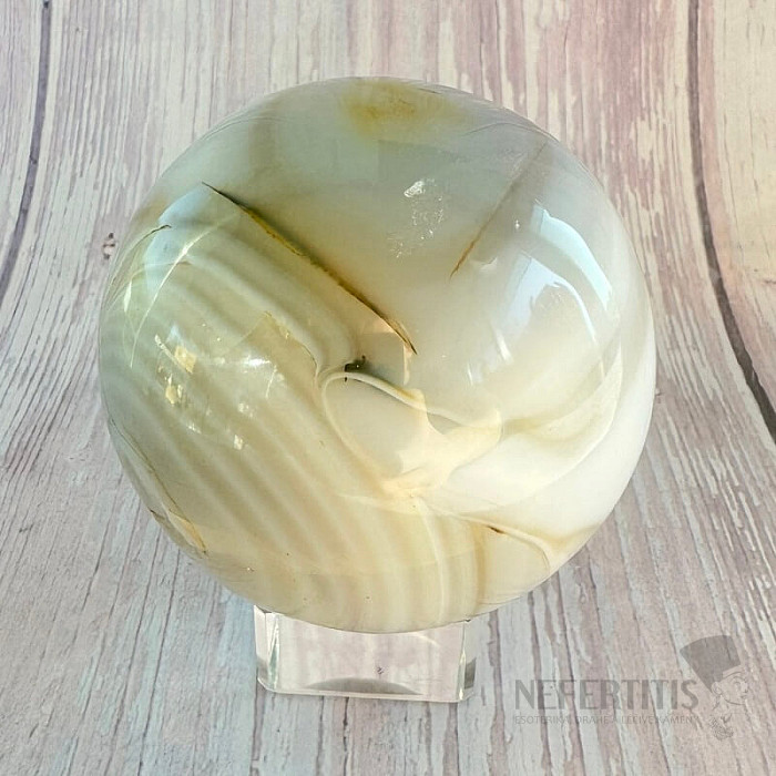 Polished gray agate sphere. Country of origin: Madagascar. You are buying the directly pictured ball. You can buy stands and pedestals for minerals here. Warning: the stone is not perfectly polished, hairline cracks… more »