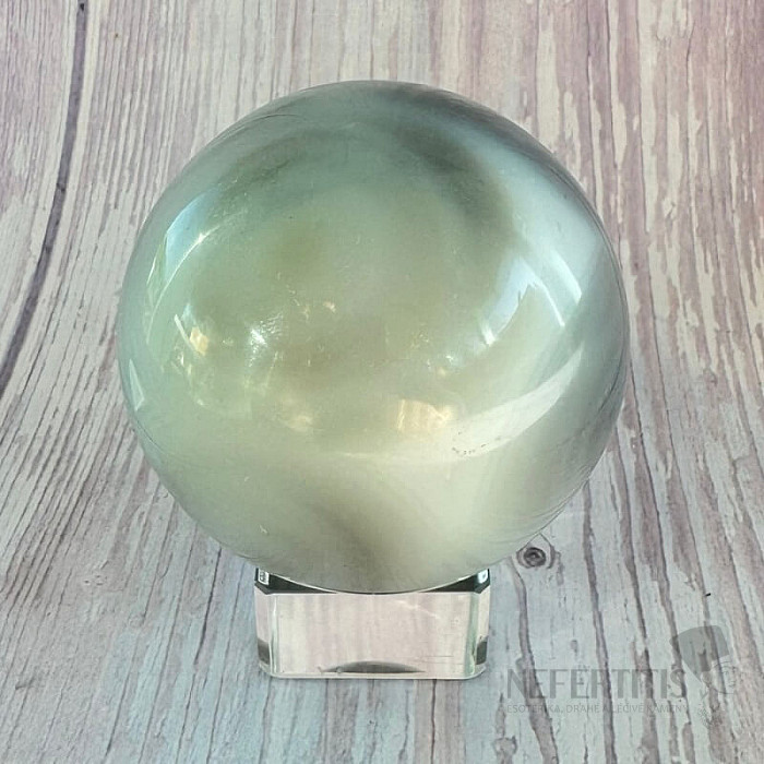 Polished gray agate sphere. Country of origin: Madagascar. You are buying the directly pictured ball. You can buy stands and pedestals for minerals here. Warning: the stone is not perfectly polished, hairline cracks… more »