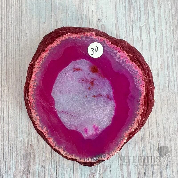 Attractive polished agate slice. A decorative element created by cutting and polishing natural agate. This agate slice is colored. You are purchasing the exact piece shown.