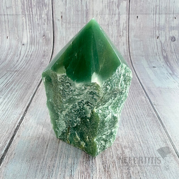Green aventurine spikes. Country of origin: Brazil You are purchasing the pictured aventurine spike. Characteristics: happiness - prosperity - perseverance - creativity - heart chakra - Feng Shui element:… more »