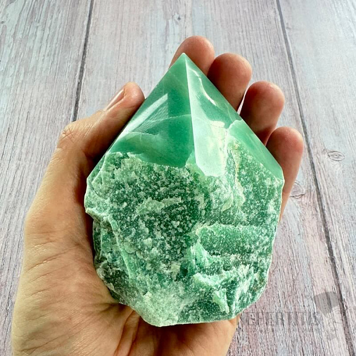 Green aventurine spikes. Country of origin: Brazil You are purchasing the pictured aventurine spike. Characteristics: happiness - prosperity - perseverance - creativity - heart chakra - Feng Shui element:… more »