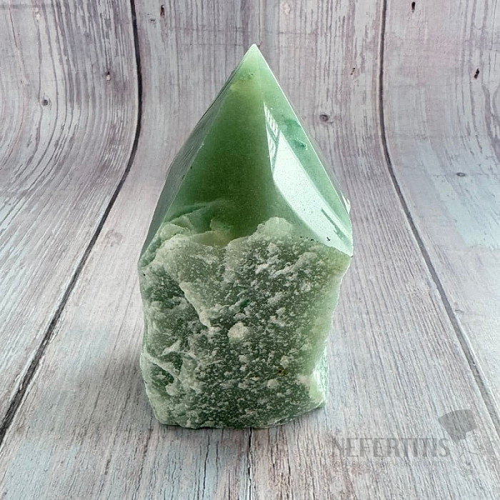 Green aventurine spikes. Country of origin: Brazil You are purchasing the pictured aventurine spike. Characteristics: happiness - prosperity - perseverance - creativity - heart chakra - Feng Shui element:… more »