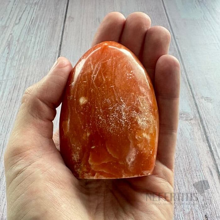 Decorative polished freeform of orange calcite.