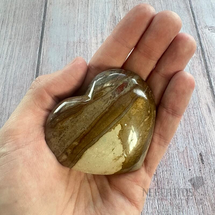 Polished heart-shaped polychrome jasper of choice quality. Country of origin: Madagascar. You are buying directly pictured jasper. Polychrome jasper is very attractive due to the color combinations in which it occurs… more »