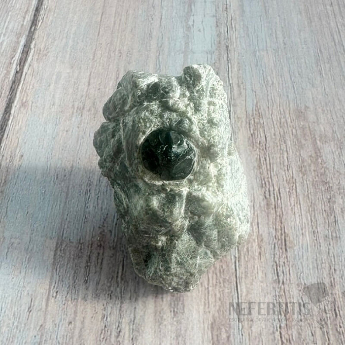 Apache Teardrop Obsidian in matrix. This type of obsidian is found only in Arizona. Size approx. 5.6 cm, teardrop approx. 1.2 cm, 81 g. Country of origin: USA, Arizona You are purchasing the obsidian pictured… more »