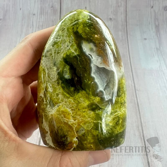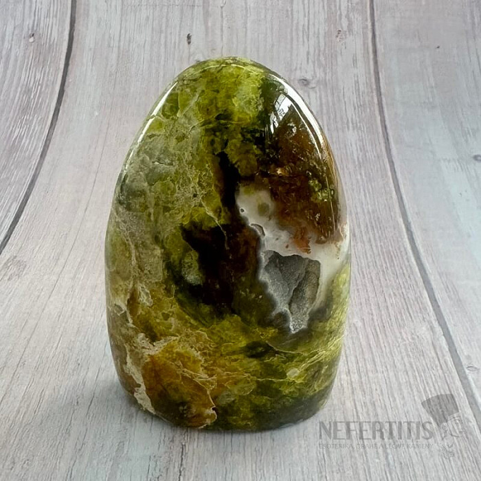 Decorative freeform made of green opal. Country of origin: Madagascar. You are purchasing the green opal pictured directly. Characteristics: stone of change - mental harmony - protection against fear - heart chakra -… more »