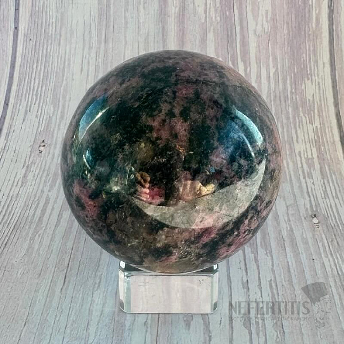 Polished rhodonite sphere in premium quality. Country of origin: Madagascar You are buying the rhodonite ball shown directly. You can buy stands and pedestals for minerals here. Warning: the stone is not perfectly… more »