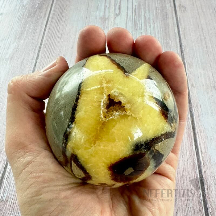 Polished ball-shaped septaria in premium quality.