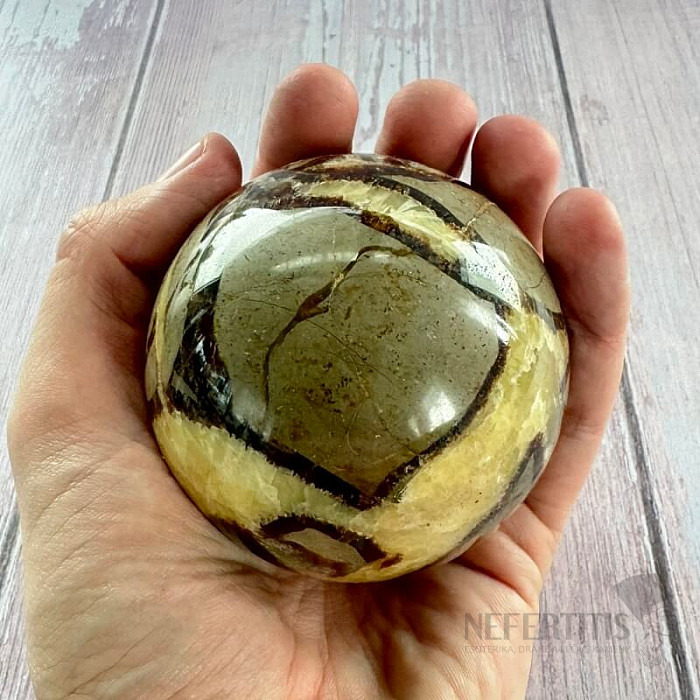 Polished ball-shaped septaria in premium quality.