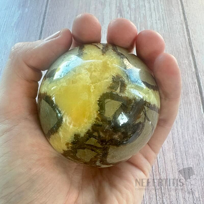 Polished ball-shaped septaria in premium quality.