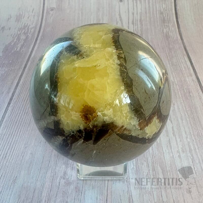 Polished ball-shaped septaria in premium quality. Country of origin: Madagascar. You are buying the septaria shown directly. You can buy stands and pedestals for minerals here. Warning: the stone is not perfectly… more »