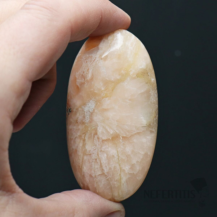 Hand-tumbled, polished stilbit oval of choice quality. Size approx. 3.8 x 7.3 cm, weight approx. 80.2 g.