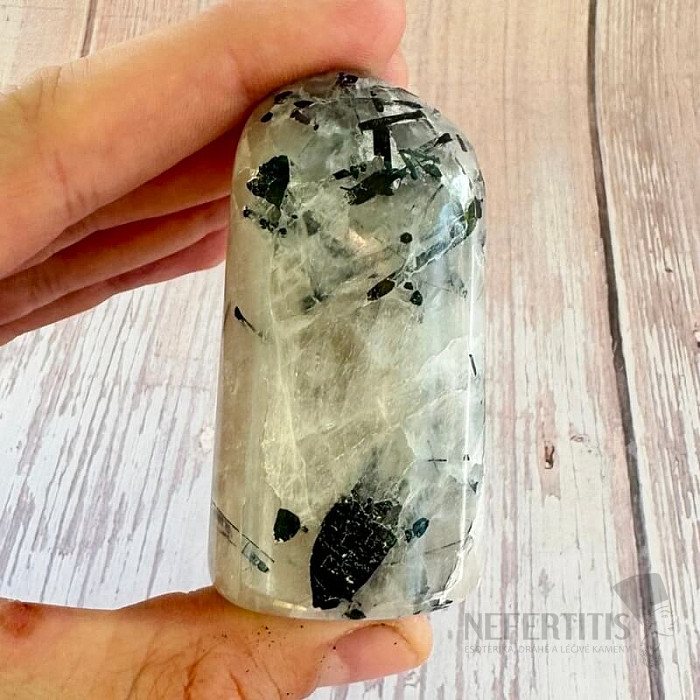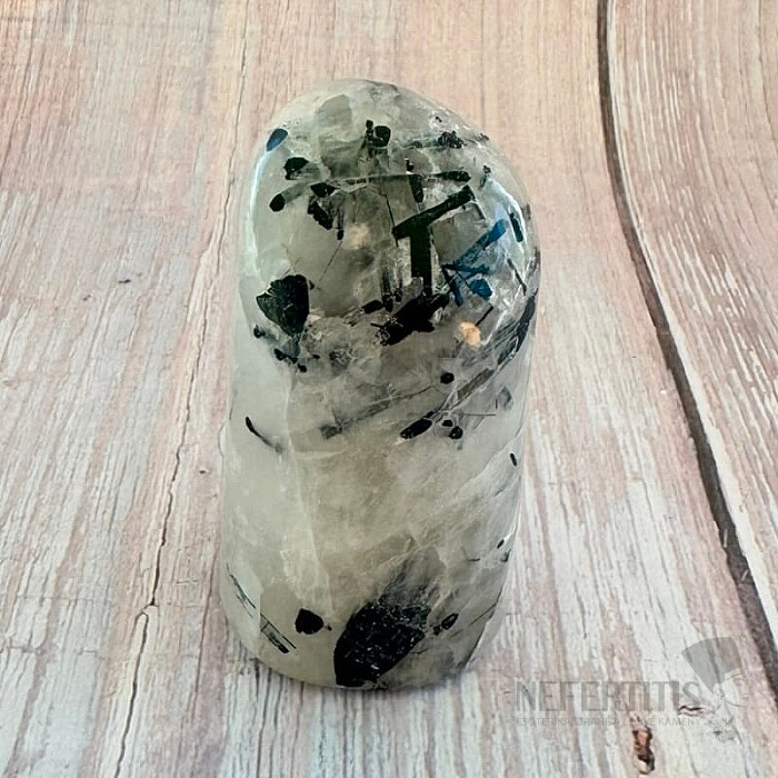 Crystal with tourmaline combines the properties of crystal and tourmaline in one crystal. According to folk traditions, crystal with tourmaline supports the harmonization of soul and mind, and is said to help solve and eliminate problems. It is said to relieve tension and harmonize body and soul. It is a stone that is believed to change negative energy and thoughts into positive ones. Crystal with tourmaline has been perceived since ancient times as a stone that helps solve and eliminate problems and is said to suppress the tendency to sometimes harm oneself.