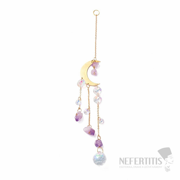 Feng Shui curtain with rainbow crystals Moon with amethysts