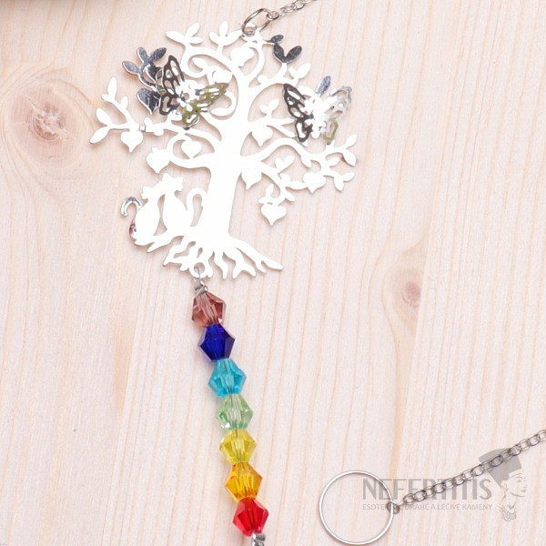 About 4 cm large silvery tree of life with butterflies - a butterfly is a symbol of creativity, freedom, light, ease of being and also reaching the goal, because the soul of the butterfly is free and full of joy. The butterfly is above all a symbol of femininity, charm, naturalness, tenderness and grace. Hang this string of crystals, full of peace and quiet, preferably in a window (apartment, office) and let the sun shine through it in the magical and sparkling colors of the rainbow into your room. Just the sight of glittering flashes of light will bring peace, joy and relaxation to your soul. Let your mind caress the colorful sunshine and draw strength and energy from it. This curtain is especially suitable for children's rooms , as it strengthens the children's feelings of all-embracing love, care and protection of angels. .
