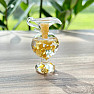 A bottle with flakes of floating gold. Ideal as a decoration for a table or other furniture. Illustrative image.