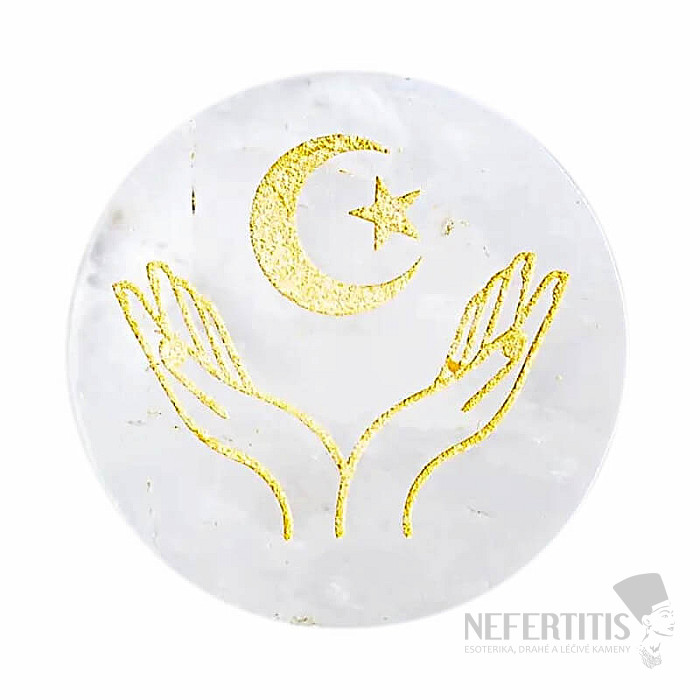 Crystal coaster - Hands, moon and star. The mat is a beautiful decoration, it can be used as a tray for jewelry and rhinestones. The symbol is engraved into the pad. Illustrative image. Symbolism of the Moon: The Moon… more »