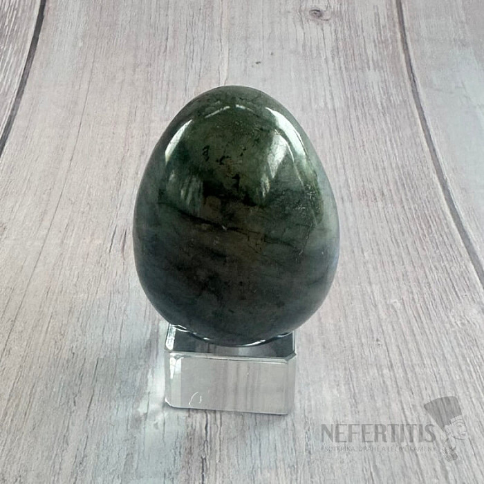 A beautiful egg cut from labradorite. Country of origin: Madagascar You are purchasing the pictured labradorite egg directly. The labradorite egg is delivered without a stand. Eggs are made from larger pieces of… more »