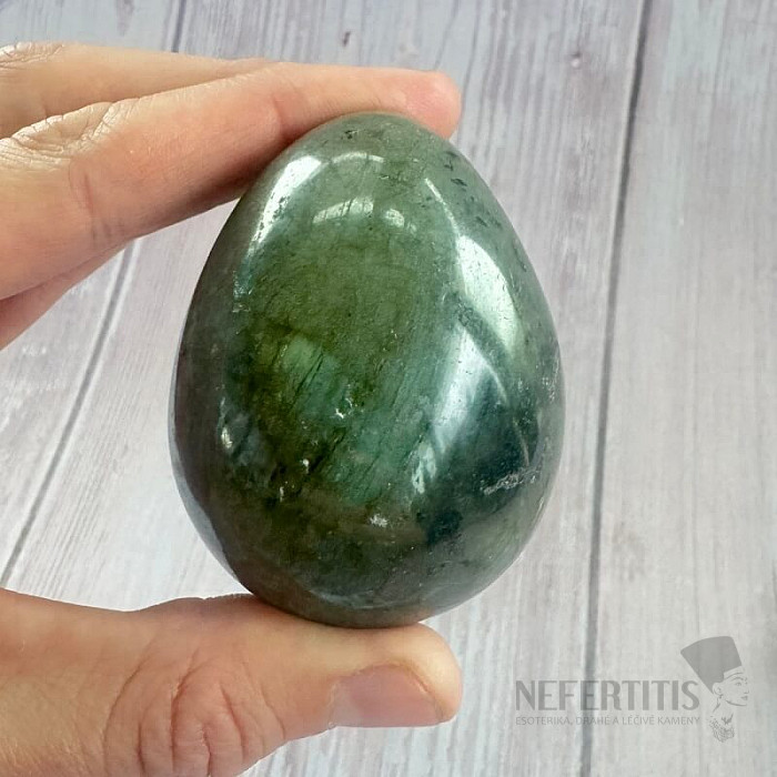 A beautiful egg cut from labradorite. Size approx. 5.1 x 6.4 cm (width x height), 237 g.