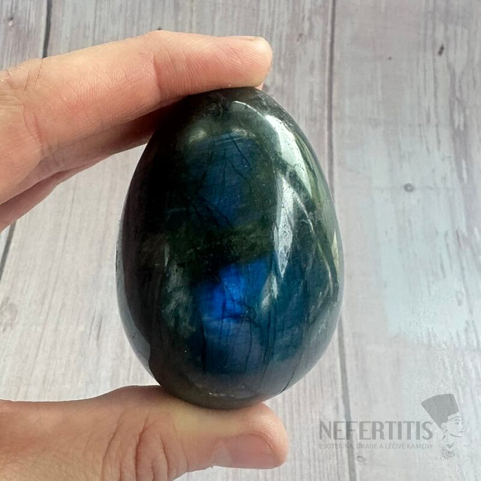 A beautiful egg cut from labradorite. Size approx. 5.1 x 6.4 cm (width x height), 237 g.