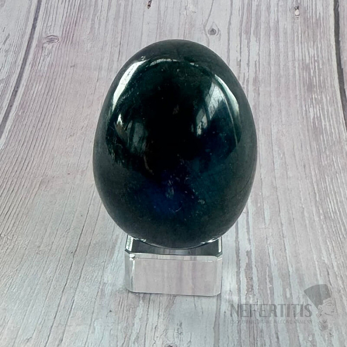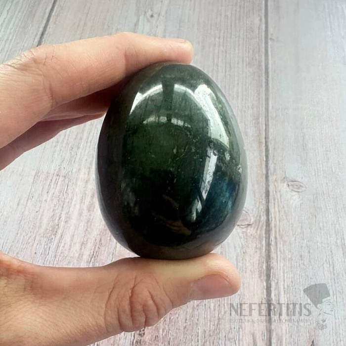 A beautiful egg cut from labradorite. Size approx. 5.1 x 6.4 cm (width x height), 237 g.