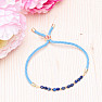 Fashionable drawstring bracelet with cut lapis lazuli and metal beads made of base metal. The cord is nylon, the tightening ring depicts the Tree of Life, a protective talisman for life energy, strength and vitality. Illustrative depiction of natural material, where the color and structure of the stone may differ from the accompanying photographs. However, you will always receive a bracelet of comparable quality.