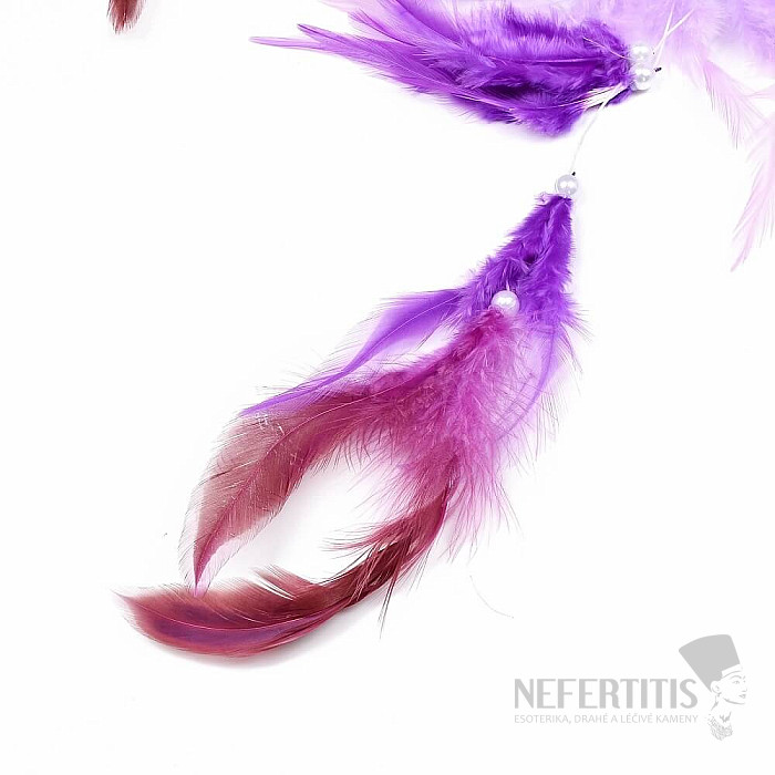 Dream Catcher Violet Moon. Beautiful home decoration. The trap has a hand-woven net, is decorated with dyed feathers and plastic beads. Length approx. 55 cm. Illustrative image.