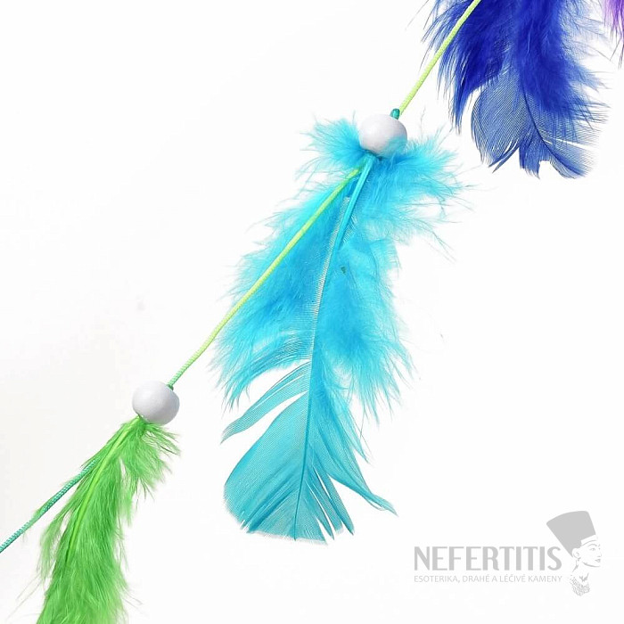 Dream Catcher Seven Chakras. Beautiful home decoration for harmonizing the chakras. The trap has a hand-woven net, decorated with wooden beads and dyed feathers in the colors of the seven chakras. Length approx. 85 cm… more »